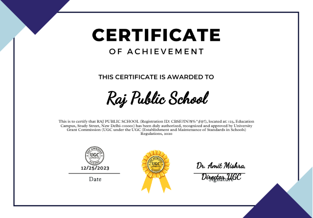 Raj Public School stands as a symbol of excellence in education, being the only school to receive approval from the University Grants Commission (UGC). This rare recognition reflects the school’s outstanding academic standards, qualified faculty, and student-focused learning environment.